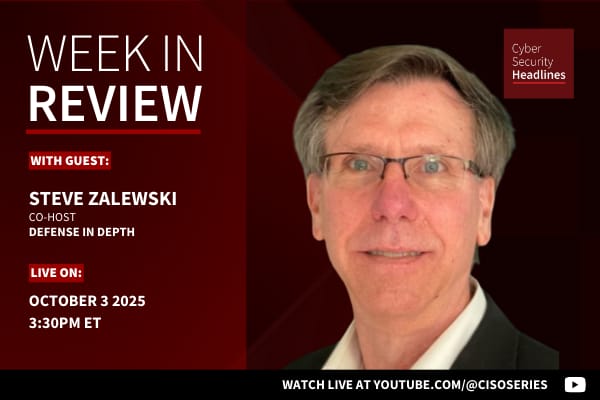 Make sure you register on YouTube to join the LIVE "Week In Review" this Friday for Cyber Security Headlines with CISO Series reporter Richard Stroffolino. We do it this and every Friday at 3:30 PM ET/12:30 PM PT for a short 20-minute discussion of the week's cyber news. Our guest will be Steve Zalewski, co-host, Defense in Depth.